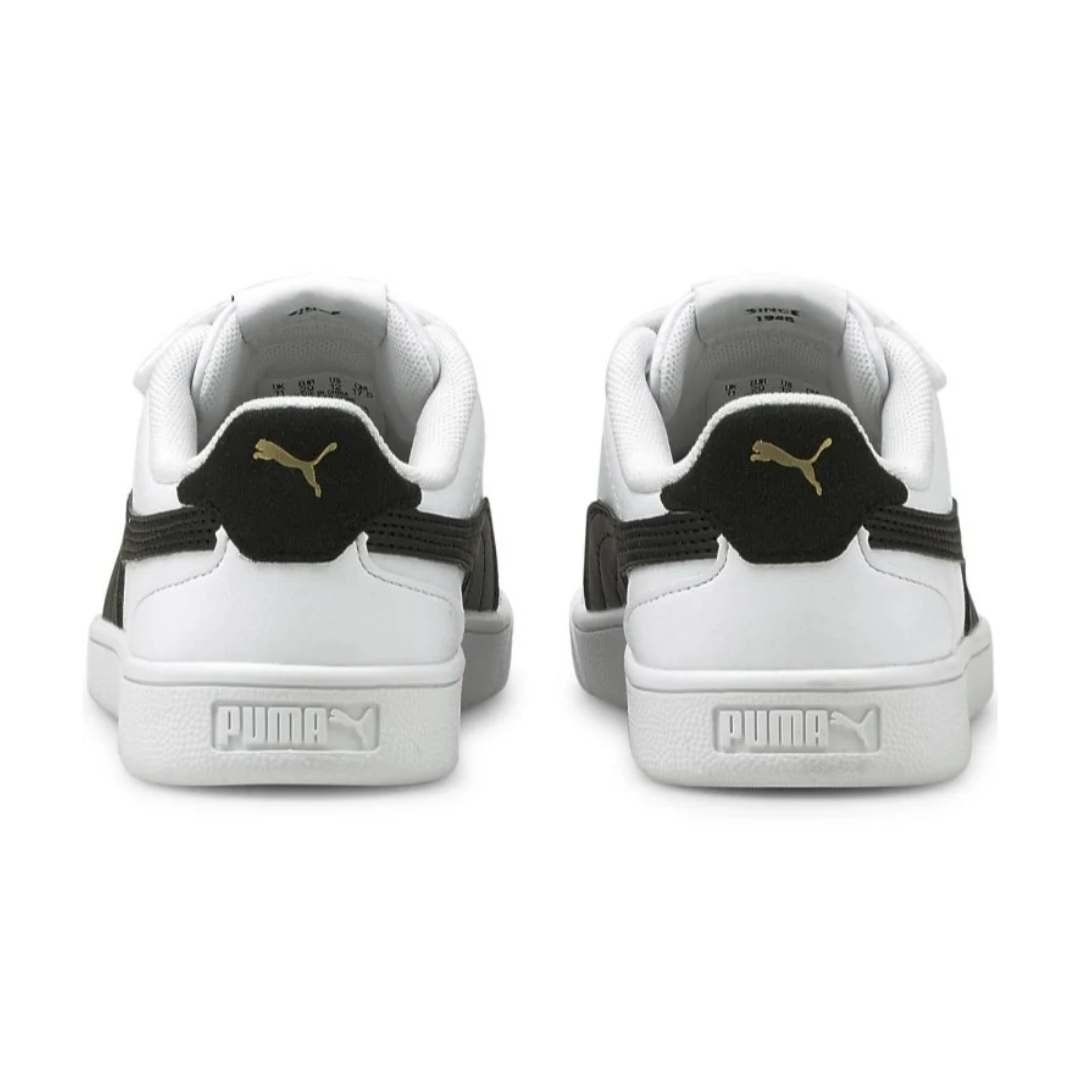 Detalle adicional: Diseño moderno con el logo PUMA destacado, disponible en color negro con detalles blancos para un look versátil.