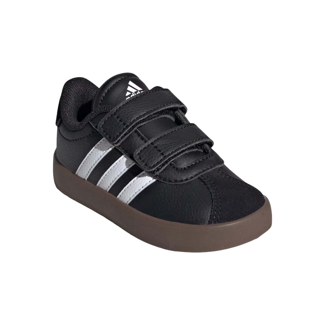 Suaves y seguras, estas zapatillas urbanas Adidas VL Court 3.0 para bebés combinan un diseño clásico con materiales pensados para los primeros pasos. La capellada de cuero sintético aporta resistencia y fácil limpieza, mientras que el interior acolchado brinda comodidad en cada movimiento. La suela de goma ofrece tracción confiable en superficies lisas, ayudando a que los más pequeños se desplacen con mayor seguridad. Su diseño urbano con las tres franjas icónicas de Adidas permite que se adapten fácilmente a cualquier estilo de vestimenta infantil, aportando un look moderno y versátil. Gracias al sistema de ajuste con tiras de velcro, se calzan y retiran con rapidez, facilitando el día a día de padres y niños.