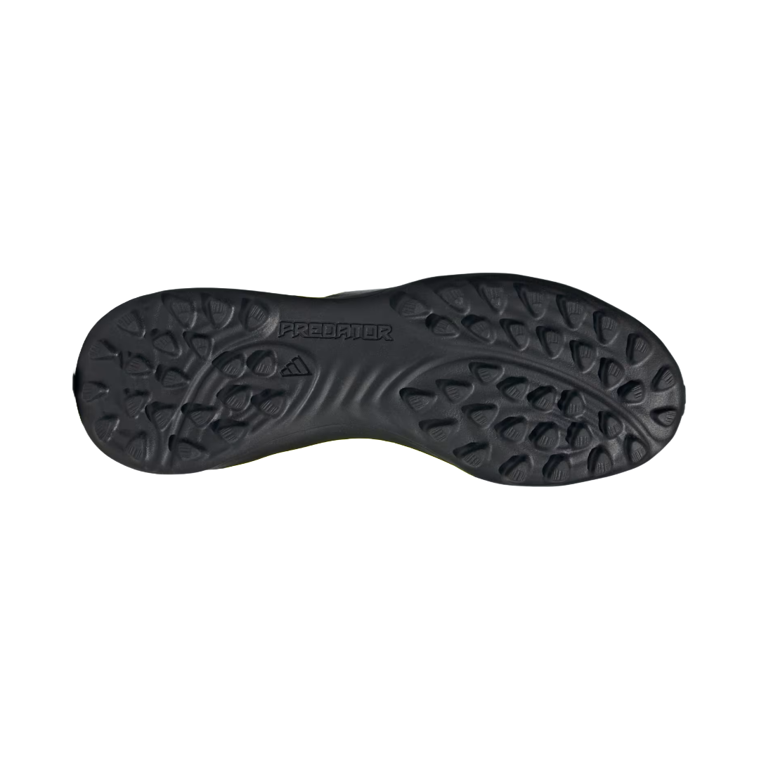 El fútbol se gana con goles y estos zapatos fueron diseñados para encontrar el arco rival. Sin. Falta. Alcanza la perfección con los totalmente nuevos adidas Predator. El exterior Hybridfeel de estos zapatos de fútbol sin cordones para jóvenes está cubierta en una textura 3D y presenta inserciones Strikescale de gran agarre en el mediopié, para que puedas hacer disparos con una precisión insuperable. Abajo, una suela de caucho ranurada ofrece estabilidad en canchas de pasto sintético. Este producto contiene al menos un 20% de material reciclado. Utilizando materiales reciclados reducimos el desperdicio, nuestra dependencia de los recursos finitos y la huella que generan los productos que fabricamos.