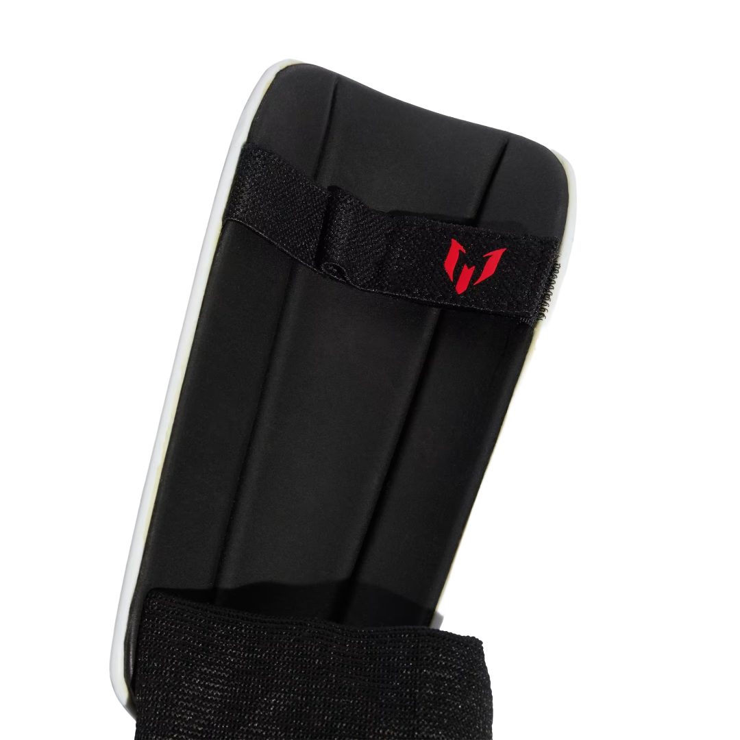 Material y diseño: Canilleras confeccionadas en plástico resistente y acolchado interno suave, con diseño inspirado en Messi y colores llamativos para niños.
