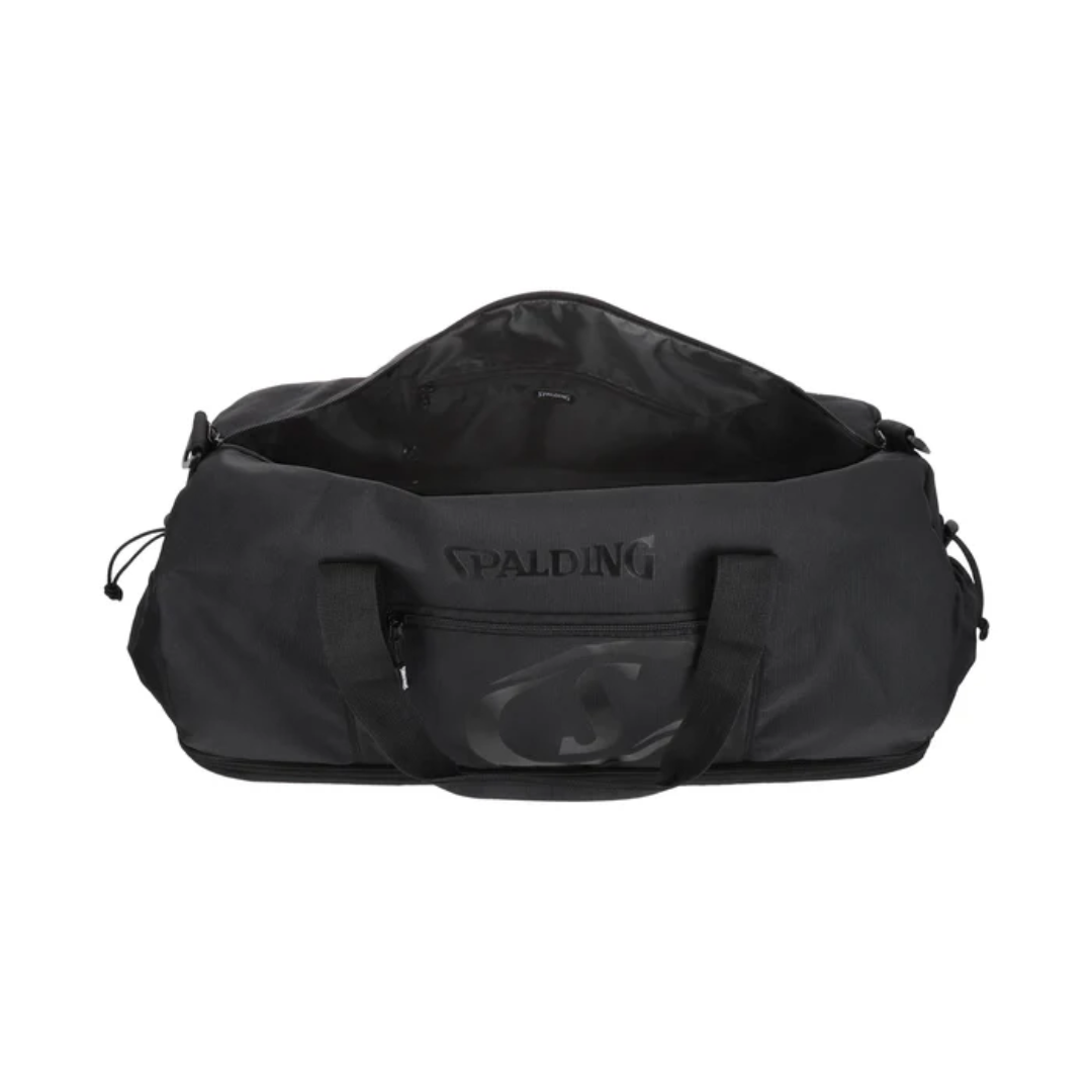 Bolso Spalding Fitness 30 L, resistente y espacioso, ideal para llevar todo tu equipo deportivo. Cuenta con compartimentos amplios y cierre seguro, además de correa ajustable para transportar con comodidad. Perfecto para gimnasio, deporte o uso diario, combinando practicidad y durabilidad.